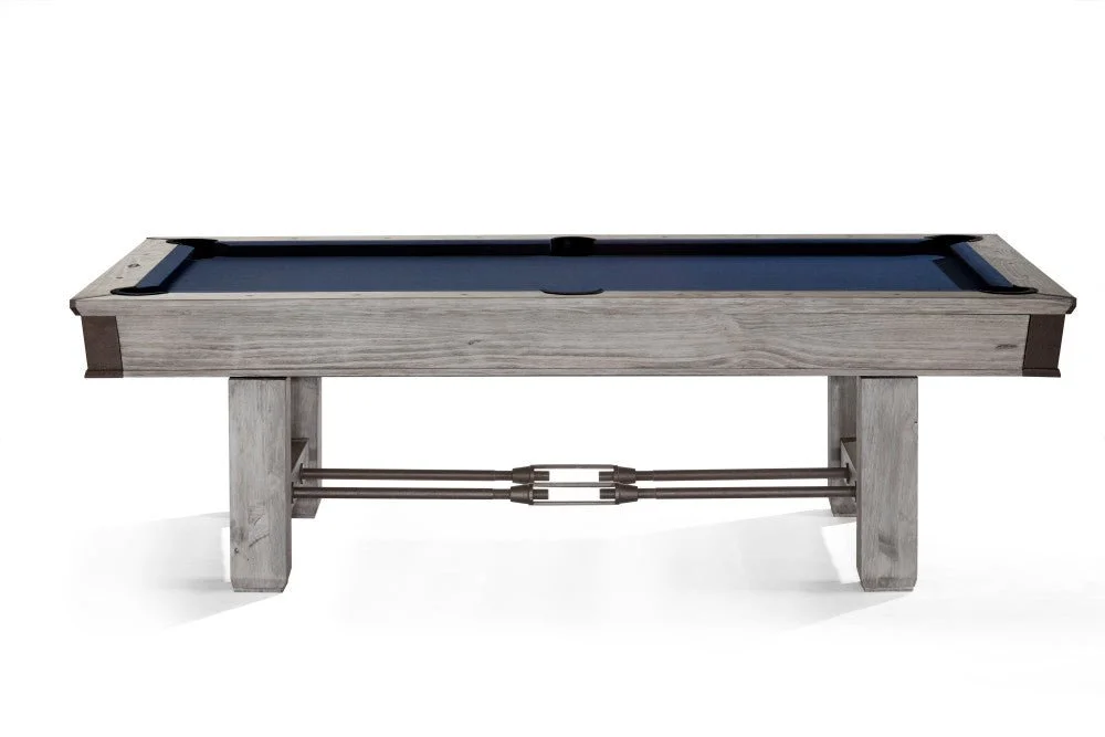 Nothing says "rack 'em up" like the rustic-meets-industrial charm of the Canton pool table. With its artful hand hammered sights and aged metal turnbuckle stretchers, corners and hardware, this table is the perfect marriage of proud craftsmanship and industrial design.